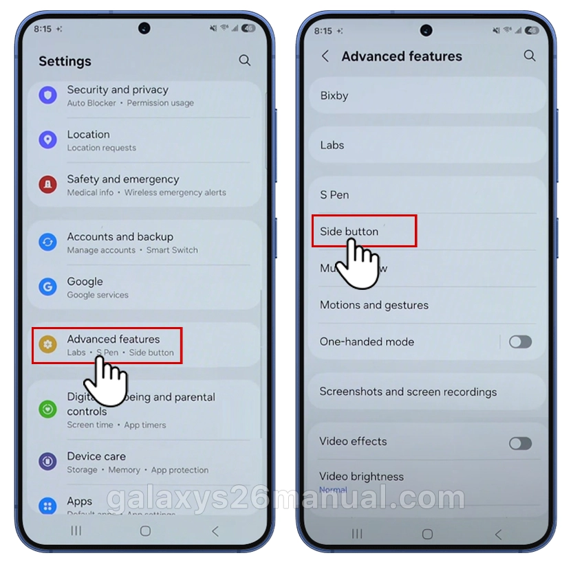 Steps to Configure Side Button on your Galaxy S26